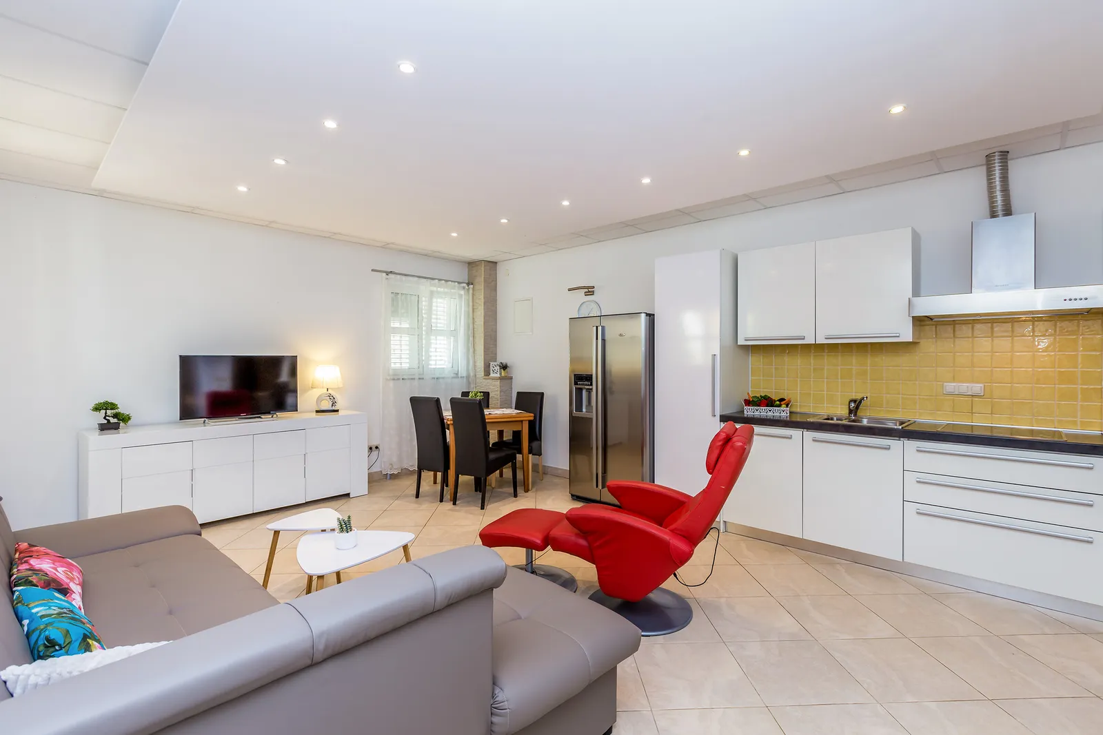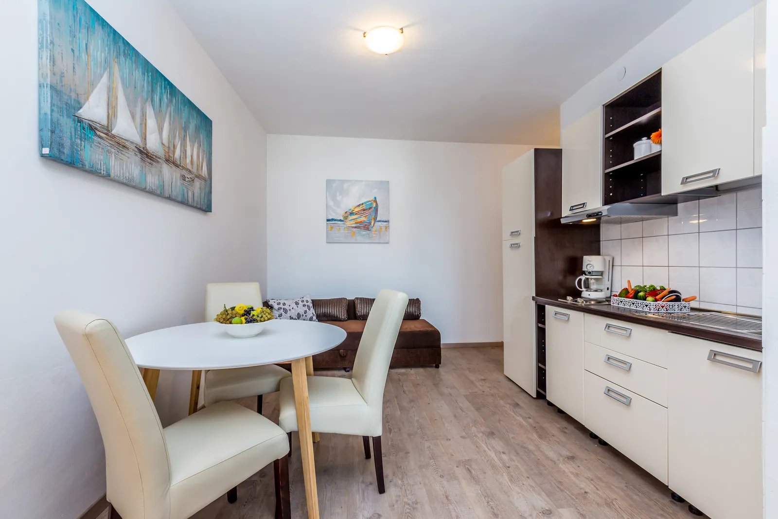The owner was very friendly, helpful and accommodating to our needs. Room was clean and comfortable. We had studio apartament that was big with kitchen and balcon. Good air cond that isn’t noisy and makes comfortable temperature.